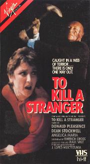 A second-rate crime thriller set in an unidentified South American country under military rule. When Maria kills an attacker, Pleasence, in self-defense, her American TV reporter husband, Stockwell, tries to get her out of trouble. But the situation worsens when it is discovered that Pleasence was a war hero who devoted his life to the military. When his death is discovered by the militaristic government, Maria and Stockwell must fight to keep from falling into the wrong hands. Shot in 1982 before Stockwell had found a new spark in his career with the lead role in Paris, Texas (1984) and a colorful supporting role in Blue Velvet (1986). Not much in the way of a thriller, or a box-office draw, To Kill a Stranger has been sentenced to an eternity on the shelves of video stores without ever receiving a theatrical release.